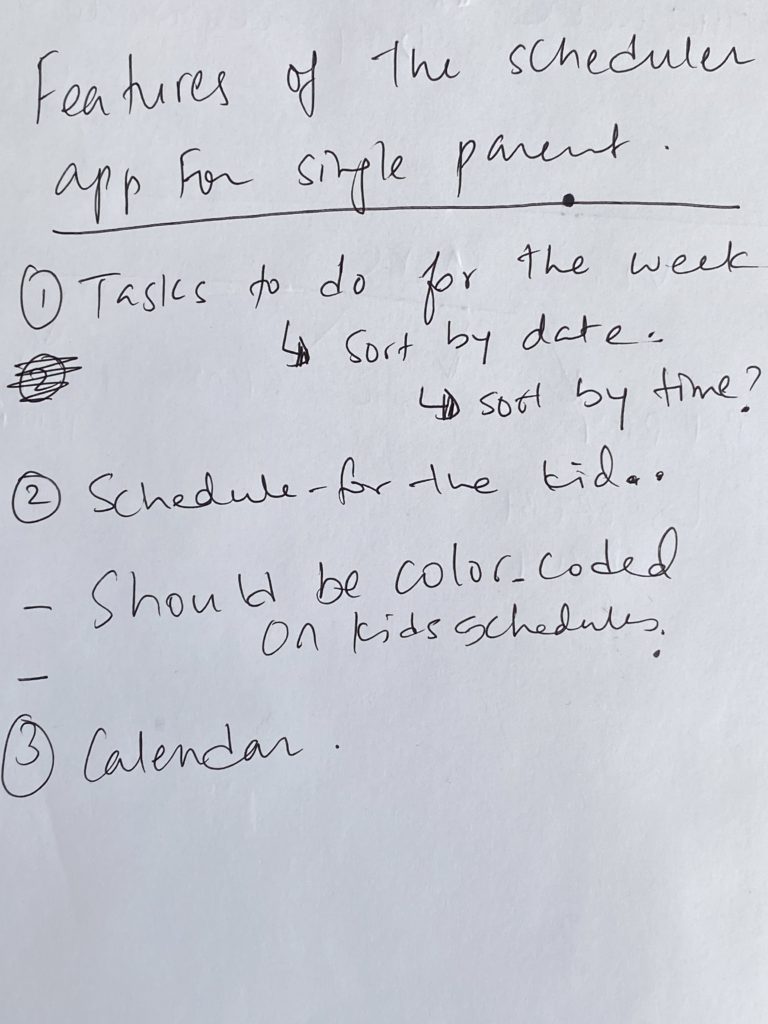• Assumption: Here the single parent is a mom sorting her tasks for the day
