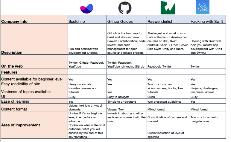 We looked at four other competitors offering similar services and did an analysis on key features important from a user’s point of view.